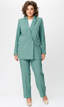 Лёгкий жакет прямого силуэта со съёмным поясом в комплекте. Полочки жакета с нагрудными вытачками и накладными карманами. Рукав втачной, длинный. Спинка со средним швом. Застёжка двубортная на две петли и пуговицы. Горловина оформлена английским воротником.