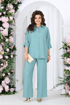 Лёгкий комплект-двойка, состоящий из однотонных брюк и рубашки из хлопка ришелье. Такой комплект подойдёт как для повседневной носки, так и для праздничных мероприятий.