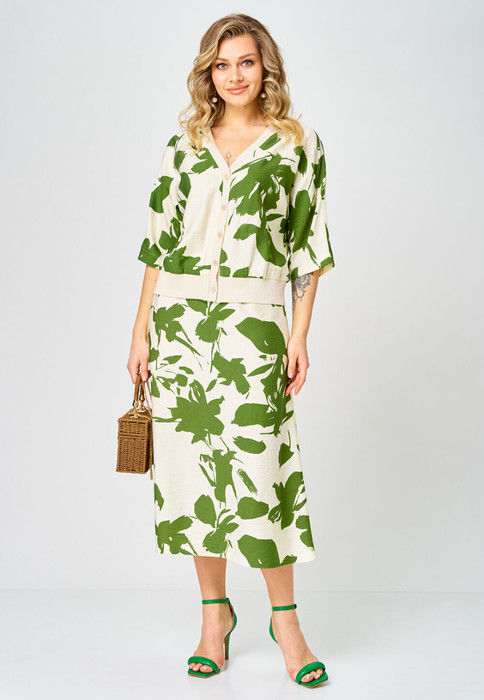 Костюм Твой Имидж 2386 молочный с зеленым принтом