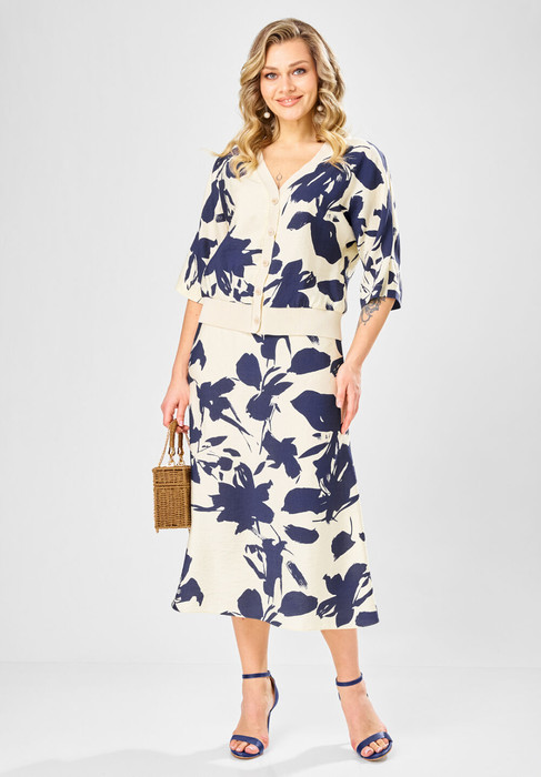 Совместные покупки Омск Женская одежда Костюмы, комплекты — Костюм Твой Имидж 2387 молочный с синим принтом
