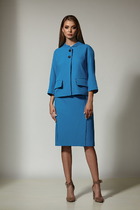 Костюм женский 2-х предметный, состоящий из жакета и юбки, выполненных из костюмной ткани "рогожка". Костюм может быть как нарядный, так и для повседневной носки.