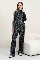 Спинка со средним швом, с рельефами. Рукава втачные, двухшовные, длинные. Горловина круглая, обтачная. Жакет с плечевыми накладками и декоративным поясом – цепочкой.