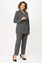 Жакет полуприлегающего силуэта, удлинённый с центральной застёжкой на отделочные пуговицы по борту и с отложными лацканами. По переду жакета рельефы и прорезные карманы с клапанами. Спинка в жакете со средним швом и рельефами. Рукав втачной, двухшовный, длинный.