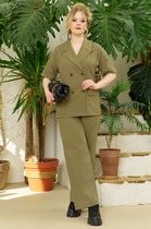 Костюм женский, состоящий из блузы и юбки, выполнен в нежнейшем оттенке «яйца-дрозда» отлично подходит для летнего сезона. Этот мягкий, почти пастельный цвет создаёт атмосферу лёгкости и свежести, а деликатный крой придаёт образу естественную элегантность.