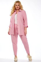 Костюм женский из плотного гладкокрашеного трикотажного полотна "кулирка", состоящий из футболки и шорт. Футболка - свободного покроя, с удлиненными плечевым и швами, короткими втачными рукавами и горловиной овальной формы, обработанной втачной планкой. В нижней части переда слева настрочен декоративный элемент прямоугольной формы. По горловине проложена отделочная строчка. Шорты - классического покроя, на притачном поясе с эластичной тесьмой внутри и карманами в боковых швах. Для регулирования степени прилегания шорт по талии в пояс вставлен шнурок, продетый через два отверстия в соединительных швах в центре пояса.