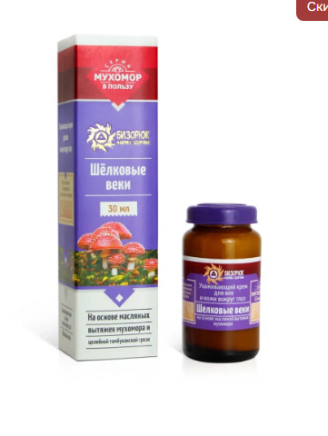 Совместные покупки Омск Косметика и парфюмерия Уход за ногами — Крем оздоровительный мухомор Шелковые веки, стекло, 30 мл, "Бизорюк"