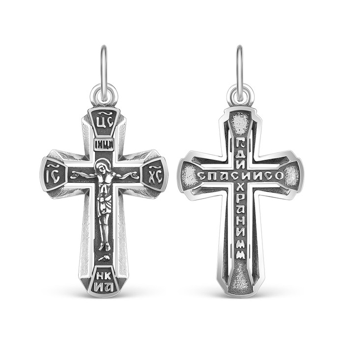 Совместные покупки Омск Ювелирные украшения и бижутерия Подвески — Крест из чернёного серебра - Господи спаси и сохрани мя, 3,3 см 925 пробы К3-593