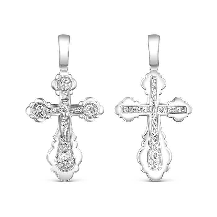 Совместные покупки Омск Ювелирные украшения и бижутерия Подвески — Крест из серебра родированный - Спаси и сохрани 4,9 см 925 пробы К3-431р