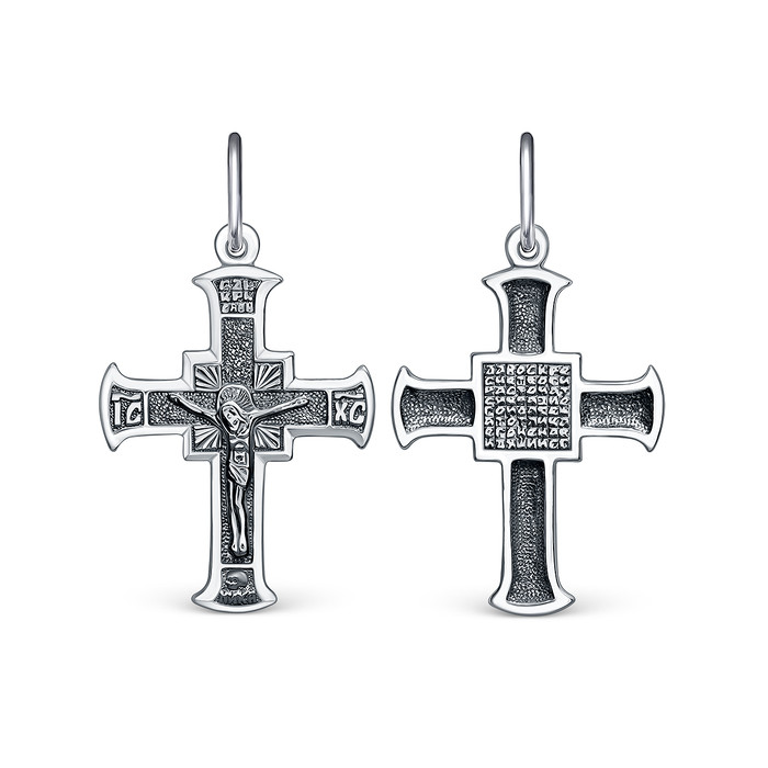 Совместные покупки Омск Ювелирные украшения и бижутерия Подвески — Крест православный из чернёного серебра - Да воскреснет Бог 3,3 см 2-309ч