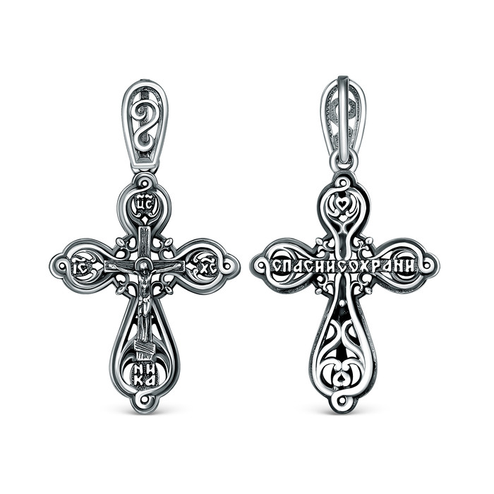 Совместные покупки Омск Ювелирные украшения и бижутерия Подвески — Крест православный из чернёного серебра - Спаси и сохрани 3,2 см ПР-013ч