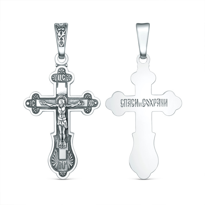Совместные покупки Омск Ювелирные украшения и бижутерия Подвески — Крест православный из чернёного серебра - Спаси и сохрани 3,7 см 925 пробы 00-00