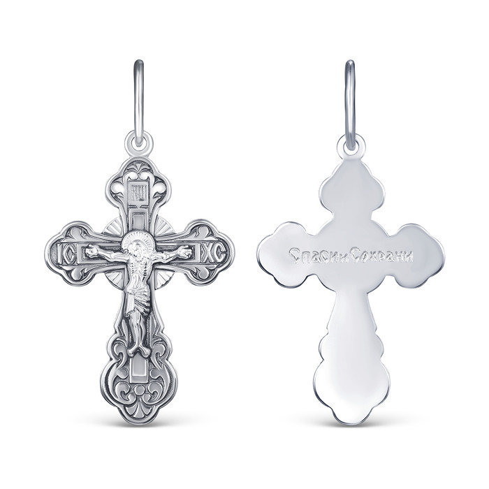 Совместные покупки Омск Ювелирные украшения и бижутерия Подвески — Крест православный из чернёного серебра - Спаси и сохрани 3,7 см 925 пробы 1-053