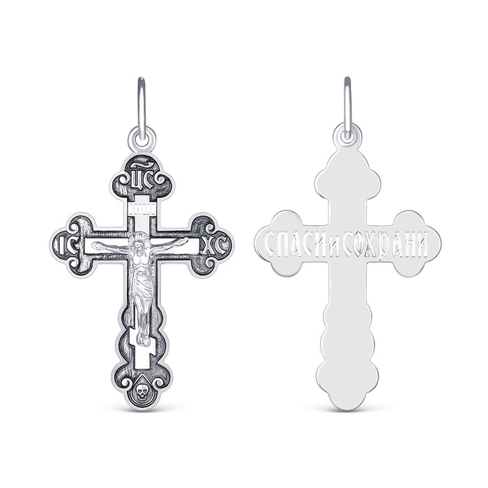 Совместные покупки Омск Ювелирные украшения и бижутерия Подвески — Крест православный из чернёного серебра - Спаси и сохрани 3,9 см 925 пробы 1-008