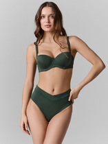 Раздельный купальник из микрофибры в рубчик. Материал быстро высыхает, комфортно ощущается на теле, устойчив к воздействию хлора и ультрафиолета. Полностью на подкладке, не просвечивает.