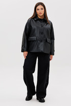 Куртка из пальтовой ткани прямого силуэта со спущенной линией плеча. Рукав втачной одношовнный внизу со складками. Полочка с центральной застежкой на кнопки и карманом-листочкой. Полочка и спинка внизу со складками. По горловине воротник-стойка с застежкой на кнопку. Куртка на подкладке.