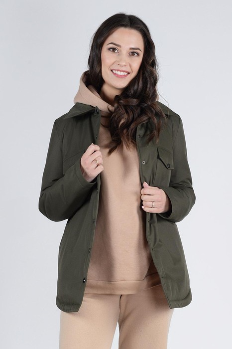 Стильная куртка-рубашка из фактурного материала с отложным воротником и застежкой спереди на фирменные кнопки. Нагрудные накладные карманы с застегивающимся клапаном,а также карманами в боковых швах.Отличительной чертой модели является стеганная ромбами подкладка.Данная куртка подойдет на каждый день, можно сочетать ее с брюками и джинсами. Длина пальто по спинке ок.72см. Длина рукава ок.66см. Рост 170 см Состав: полиэстер - 100%, утеплитель: Air Twin Light 100 г/m2 Р-ры 42-52 Цвет: защитный Цвет одежды может незначительно отличаться от оригинала.