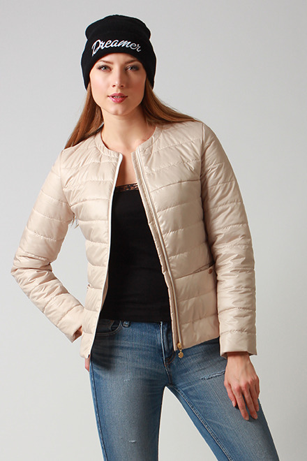 Короткая приталенная куртка с боковыми карманами в стежке. Застежка на витую молнию и отсутствие воротника выглядит очень оригинально. Длина куртки по спинке -ок.62см, длина рукава-ок.65см. Рост 170 см Р-ры: 42-52 Состав: полиэстер 100% Утеплитель: синтепон-холофайбер Air Twin Light 100 г/m 2 Цвет-беж