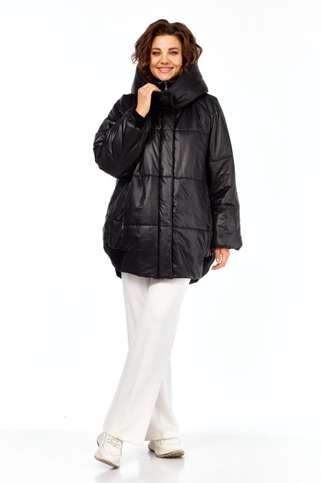 Куртка женская, прямого силуэта с рукавом реглан. Застежка центральная на тесьму молнию и планку с кнопками. По спинке рельефные швы. По переду рельефные швы, в швах карманы с молнией и отделочной деталью, по низу боковых швов-довяз. Рукав реглан с вытачкой и манжетом(довяз)- по низу. Воротник стойка. Капюшон с центральной частью, с отделочной деталью по отлету (застежка на кнопки)-съемный, фиксируется с помощью кнопок. На центральной части под молнией -ветровик. В качестве отделки используется фурнитура и детали. Температурный режим до -10 градусов.