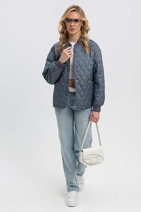 Самой модной верхней одеждой этого года стал бомбер. По своей универсальности и практичности он не уступает ни извечным косухам, ни классическим стеганым курткам. Этой весной он обещает занять лидирующие позиции. Если вам не терпится и хочется снять пальто или куртку поскорее, присмотритесь к данным моделям. Отличный вариант, который вряд ли утратит свою популярность — бомбер из стеганой ткани. Носить его можно с чем угодно: от базовых маек и юбок длины миди до многослойных брючных сетов с рубашками и жакетами. Модель хороша — она подходит всем женщинам без исключения. Линия плеча – спущена, объем изделия очень комфортный, трикотажный пояс только со спины – данный прием позволяет не перерезать фигуру в нежелательных местах. Застежка на кнопки, что позволяет легко расстегнуть верх или низ для комфортной носки. Модель средней длины, подойдет на любой рост, как для высоких, так и для миниатюрных женщин. Трикотажный воротник и манжеты очень приятны к телу. Утеплитель термофин, плотность 100.