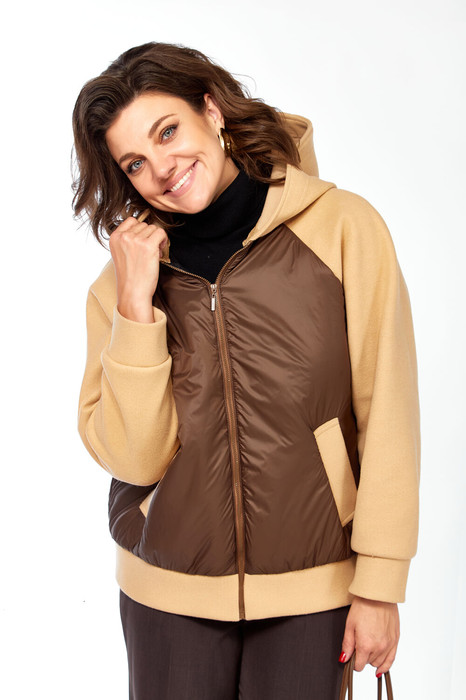 Демисезонная комбинированная куртка-бомбер с капюшоном и застежкой на молнию, из ткани Лакке с тонкой прослойкой синтепона и мягкого трикотажного драпа, подкладка по переду и по спинке. Благодаря свободному крою куртка прекрасно садится на разные фигуры, легкая и практичная станет незаменимой вещью в вашем гардеробе.