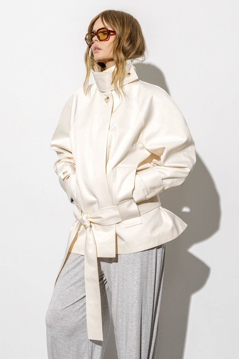 Укороченный свободный тренч с поясом (приобрести брюки с фото можно по арт. 6799).