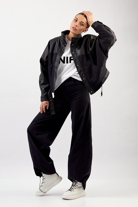 - низ куртки обработан притачной планкой со шлёвками и съёмным поясом с пряжкой