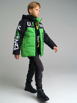 Куртка зимняя из мембранной ткани 5000*5000. Линия Nord - высокая степень теплозащиты. Температурный режим до -25С. Материал верха с ветрозащитным и водоотталкивающим покрытием. Внутренняя и внешняя ветрозащитные планки. Два боковых кармана на липучке. Внутренний карман. Потайной карман на молнии на левом рукаве. Подкладка - флис. Съемный капюшон с креплением на кнопках. Низ рукава на эластичном манжете с отверстием для большого пальца. Текстильный клапан для защиты подбородка при застегивании молнии. Светоотражающие элементы. *температурный режим является рекомендованным, необходимо учитывать уровень активности ребенка и многослойность поддевочной одежды (термобелье, флис).