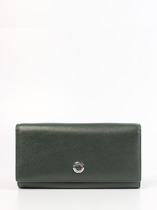 Кошелек женский выполнен из натуральной кожи. Детали: кошелек закрывается на магнитную кнопку, 2 отделения для купюр, 6 слот отделений для визиток или карт, 1 отделение с прозрачным окошком для карты или проездного, 2 кармана, 1 отделение на кнопке для монет. Фурнитура серебристого цвета. Упаковка: фирменная белая коробка.