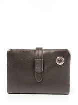 Кошелек женский выполнен из натуральной кожи. Детали: кошелек закрывается на магнитную кнопку, 2 отделения для купюр, 6 слот отделений для визиток или карт, 1 отделение с прозрачным окошком для карты или проездного, 2 кармана, 1 отделение на кнопке для монет. Фурнитура серебристого цвета. Упаковка: фирменная белая коробка.