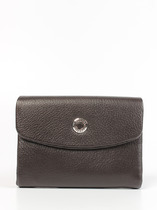Кошелек женский выполнен из натуральной кожи. Детали: кошелек закрывается на скрытый магнит, 1 отделение для купюр, 6 слот отделений для визиток или карт, 1 отделение с прозрачным окошком для карты или проездного, 4 кармана, 1 отделение на молнии для монет. Фурнитура серебристого цвета. Упаковка: фирменная белая коробка.
