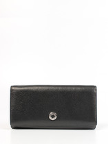 Кошелек женский выполнен из натуральной кожи. Детали: основное отделение на магнитной кнопке, 1 отделение для купюр, 8 отделений для визиток или карт, 1 отделение на кнопке для мелочи. Фурнитура серебристого цвета. Упаковка: фирменная белая коробка.