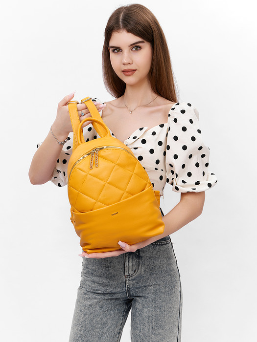 Рюкзак женский выполнен из экокожи. Детали: 2 укреплённые стропой регулируемые ручки по 85 см, маленькая ручка для держания в руке. Внутри изделия: 1 основное отделение на молнии, 2 открытых кармана, 1 карман для мобильного телефона, 2 кармана на молнии. Снаружи изделия: 1 карман на молнии на лицевой стороны, 1 карман с оборотной стороны на молнии. Брендированная подкладка из хлопка. Металлическая брендированная фурнитура серебристого цвета. В комплекте фирменный пыльник.