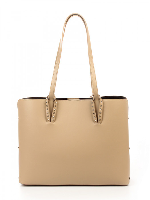 Сумка женская выполнена из натуральной кожи. Детали: 2 ручки 60 см. Фактура кожи: гладкая. Каркас сумки: жесткий. Сумка на ножках. Особенность модели: Сумка состоит из двух частей: сумки и большой хлопковой косметички. Застежка сумки: магнитная кнопка. Внутри изделия: 1 отделение. Снаружи изделия: 1 карман на молнии сзади. Внутри косметички: 1 карман на молнии, 1 открытый карман. Размеры косметички 32см* 22см*8см. Металлическая брендированная фурнитура серебристого цвета. В комплекте сумка, косметичка, фирменный пыльник для хранения сумки.