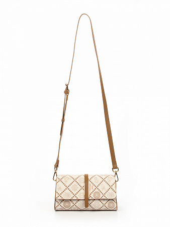 Сумка женская выполнена из экокожи канва. Детали: 1 съёмная регулируемая длинная регулируемая ручка 110-125см. Внутри изделия: 2 отделения на молнии разделены перегородкой в виде кармана на молнии, 1 карман на молнии, 1 карман открытый. Снаружи изделия: 1 карман на оборотной стороне на молнии. Брендированная подкладка из хлопка. Металлическая брендированная фурнитура золотистого цвета. В комплекте фирменный пыльник.