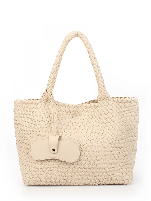 Сумка плетеная выполнена из экокожи. Детали: 2 ручки 50 см. Сумка имеет 1 отделение, закрываемое на магнит. В комплекте фирменный пыльник для хранения сумки, чехол для очков, косметичка. Внутри косметички: 1 отделение на молнии, 1 карман на молнии, 1 открытый карман. Особенности косметички: брендированная подкладка из хлопка, брендированная фурнитура серебристого цвета.
