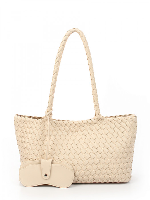 Сумка плетеная выполнена из экокожи. Детали: 2 ручки 60 см. Сумка имеет 1 отделение, закрываемое на магнит. В комплекте фирменный пыльник для хранения сумки, чехол для очков, косметичка. Внутри косметички: 1 отделение на молнии, 1 карман на молнии, 1 открытый карман. Особенности косметички: брендированная подкладка из хлопка, брендированная фурнитура серебристого цвета.