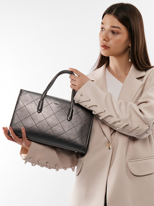 Сумка женская выполнена из экокожи. Детали: 2 короткие ручки по 30 см, 1 длинный ремешок на плечо 120 см. Внутри изделия: 1 отделение на молнии и 2 отделения на магнитных кнопках, 1 карман для документов на молнии, 1 открытый карман, 1 карман для мобильного телефона. Брендированная подкладка из хлопка. Металлическая брендированная фурнитура серебристого цвета. В комплекте фирменный пыльник.
