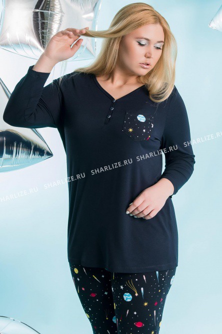 Женский лонгслив из вискозного полотна, полуприлегающего силуэта с втачным рукавом.Модель украшена пришивным карманом из набивной ткани, а V-образный вырез декорирован планкой на пуговицах.Изделие комфортно сидит по фигуре не сковывая движений.