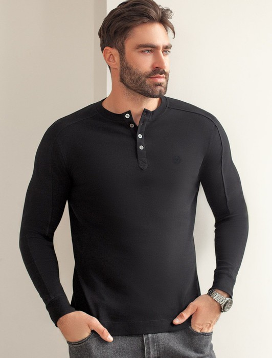 Совместные покупки Омск Мужская одежда Футболки — Лонгслив с воротником на пуговицах и декоративными швами из премиального хлопка