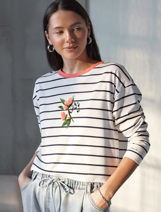 Состав: 92%Хлопок 8%ПУ Плотность: 170 Г/м2Свободный лонгслив белого цвета в темно-синюю полоску с длинным рукавом выполнен из премиального хлопка с добавлением эластана, плотностью 170 Г/м2, что обеспечивает комфорт и приятные тактильные ощущения. Полоска - придает изделию легкую текстурность, принт в виде цветка, который нанесен красками с устойчивым покрытием, добавляет стиля и индивидуальности, а круглый ворот создает универсальный образ, который подойдет для повседневного использования. Такой лонгслив идеально подходит для весеннего и летнего сезона благодаря легкой и дышащей ткани. Представленная широкая размерная линейка позволяет выбрать оптимальный вариант на любую фигуру, в том числе на плюс-сайз, обеспечивая свободу движений и удобство на каждый день. Этот комфортный лонгслив станет отличной базой в гардеробе, сочетаясь с различными стилями одежды и создавая простой, но эффектный образ.