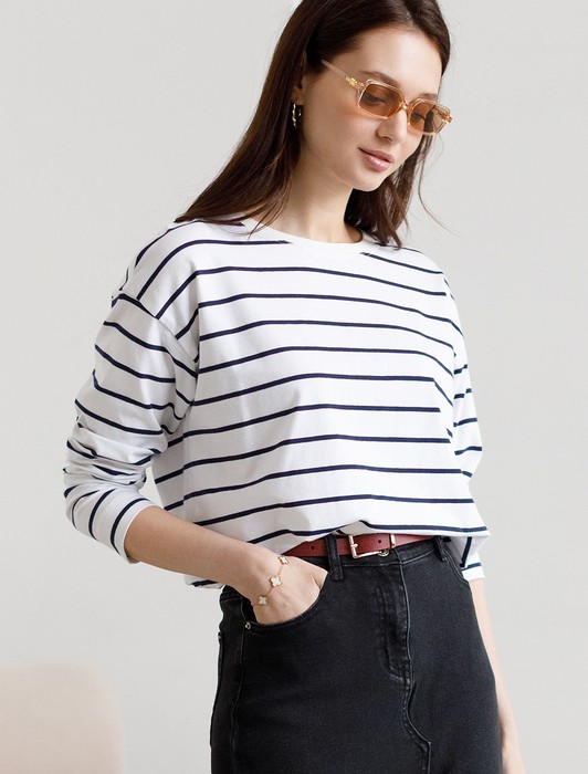 Состав: 92%Хлопок 8%ПУ Плотность: 170 Г/м2Свободный лонгслив белого цвета в темно-синюю полоску с длинным рукавом выполнен из премиального хлопка с добавлением эластана, плотностью 170 Г/м2, что обеспечивает комфорт и приятные тактильные ощущения. Полоска - придает изделию легкую текстурность и стильный вид, а круглый ворот создает универсальный образ, который подойдет для повседневного использования. Такой лонгслив идеально подходит для весеннего и летнего сезона благодаря легкой и дышащей ткани. Представленная широкая размерная линейка позволяет выбрать оптимальный вариант на любую фигуру, в том числе на плюс-сайз, обеспечивая свободу движений и удобство на каждый день. Этот комфортный лонгслив станет отличной базой в гардеробе, сочетаясь с различными стилями одежды и создавая простой, но эффектный образ.