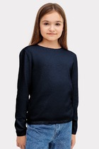 Плечо спущено, пройма углублена. Рукав втачной, длинный. По низу рукава отрезная манжета из рибаны. По низу джемпера отрезной пояс из рибаны.
