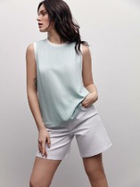 Блузка женская прямого силуэта из сатиновой ткани. Горловина круглой формы, в горловину втачан стояче-отложной воротник. Центральная застежка на пуговицы.