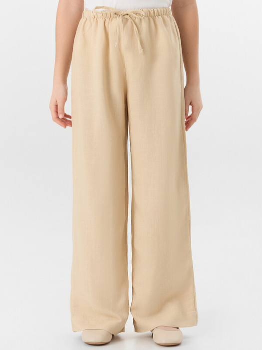 Брюки для девочек прямиго силуэта. Средняя посадка, пояс отрезной с эластичной тесьмой внутри 20RV. В поясе пробиты петли и втянут шнур из основного полотна.  Низ обработан швом в подгибку.