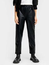 Брюки свободного силуэта с высокой посадкой. Пояс цельнокроенный с эластичной тесьмой внутри 30RV. По поясу сделаны 2 отделочные строчки. Боковые швы перенесены вперед. Карманы в боковых швах. Низ с открытым срезом. По низу сделана отделочная строчка.