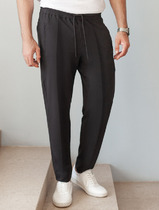Стильные брюки из трикотажного футера с теплым подчесом. Силуэт зауженный, штанины с манжетами. Есть удобные боковые карманы. В поясе – эластичная тесьма и шнурок-затяжка. Просто, комфортно, актуально!