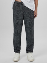 Брюки прямые, свободные. Пояс отрезной с эластичной тесьмой внутри. С внешней стороны пояса пробиты петли и втянут шнур (8КXW-1  8мм) с узлом на концах. В боковых швах обработаны карманы, подкладка кармана из основного полотна. На левой передней половинке проложена декоративная строчка - имитация гульфика. На задней правой половинке накладной карман. Нижние срезы брюк обработаны швом вподгибку с эластичной тесьмой внутри.
