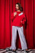 Брюки прямого силуэта. Пояс отрезной. В боковом шве потайная молния (Gizli №4, 5мм). По переду на уровне колена отрезной низ. Низ обработан в подгибку.