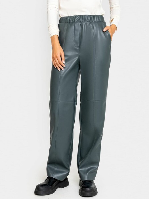 Женские брюки прямого свободного силуэта из экокожи. Пояс с эластичной тесьмой внутри, линия талии чуть завышена. Есть боковые карманы. На передней части модели – имитация гульфика, а также горизонтальные и вертикальные рельефные швы. Эти брюки вы искали!