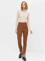 с эластичной тесьмой внутри. По поясу проложены отделочные строчки. В боковых швах карманы с отрезным бочком. По низу брюк подгибка с эластичной тесьмой внутри.